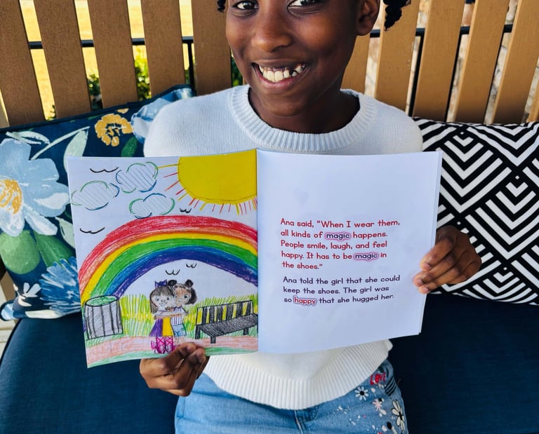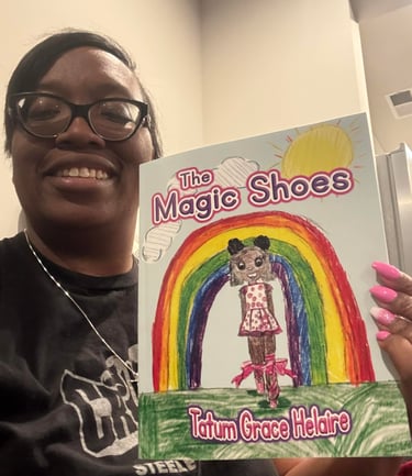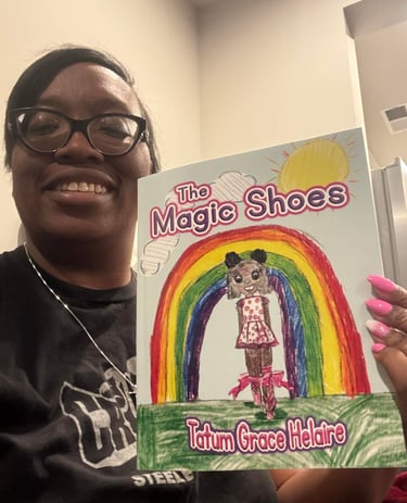 The Magic Shoes is such a special accomplishment because this book was birthed out of adversity. As a kindergartener, Tatum found herself learning online 1/2 way through the school year because of the Covid pandemic. She struggled over the next two years. Despite her struggles, Tatum persevered. In the second grade, she got support from two teachers at her elementary school who helped to boost her confidence. That's when she wrote The Magic Shoes as a school assignment. She is so proud of her achievement. She is even more proud to share this story with the world.